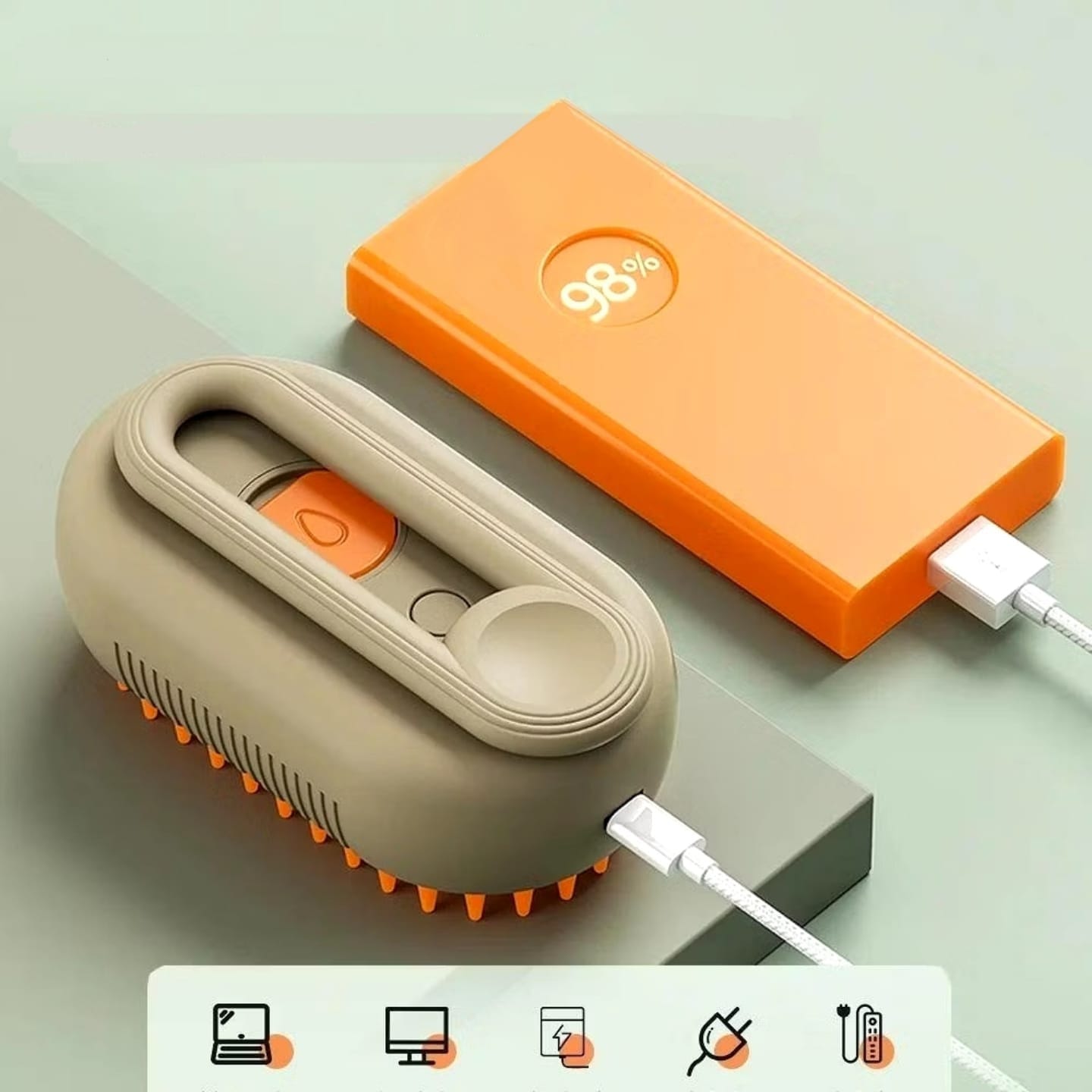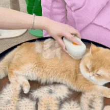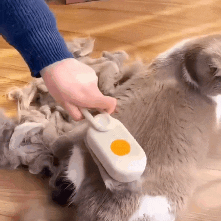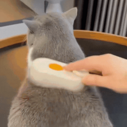 As cerdas de silicone arrancam os pelos soltos enquanto massageiam. O vapor morno suave (só água, sem cheiro) ajuda a reduzir a estática, a queda de pelos pela casa e o acúmulo que pode levar às bolas de pelo e aquele vômito chato de madrugada.
